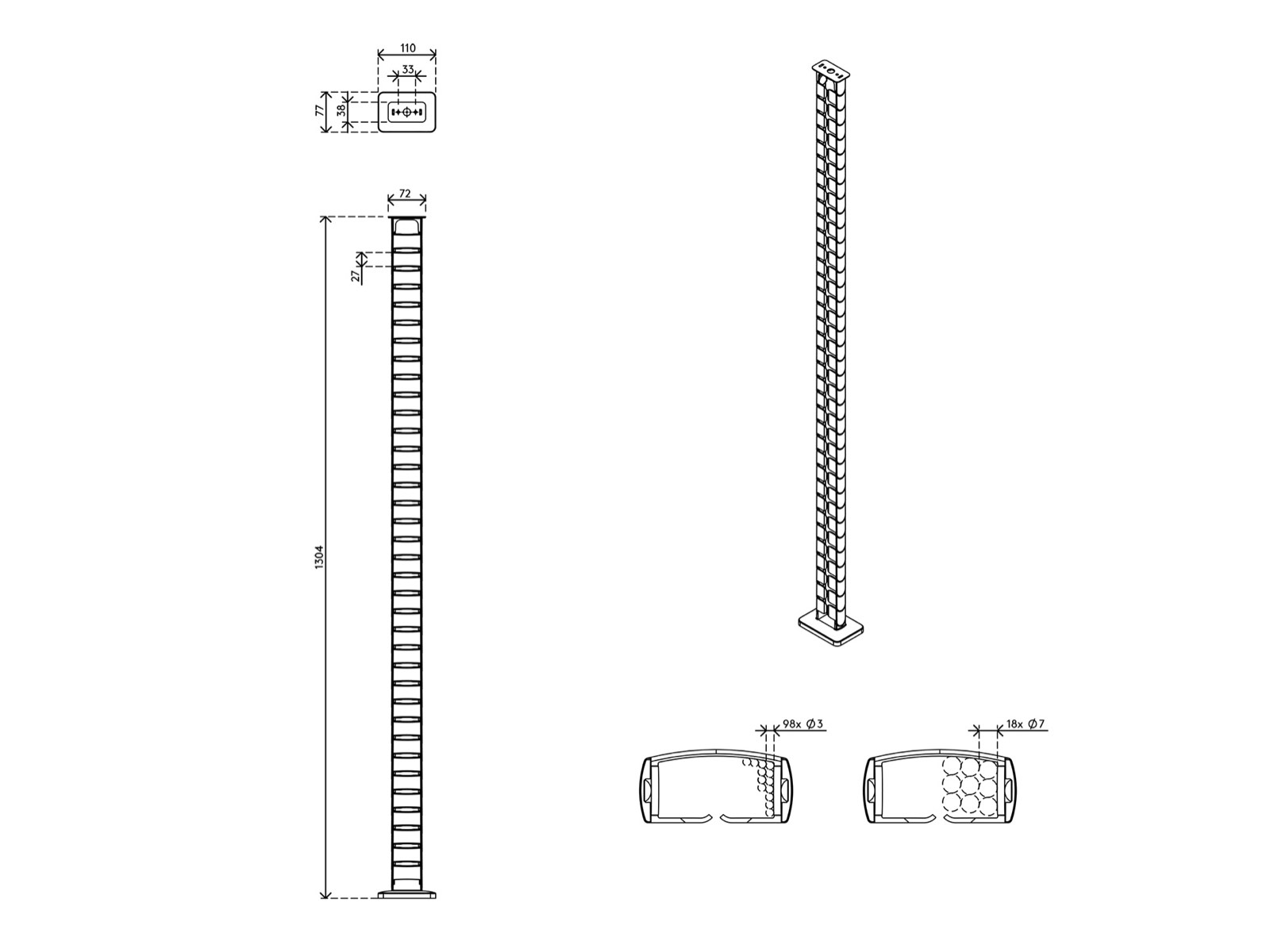 - Geschikt voor 18 x 7 mm kabels of 98 x 3 mm kabels