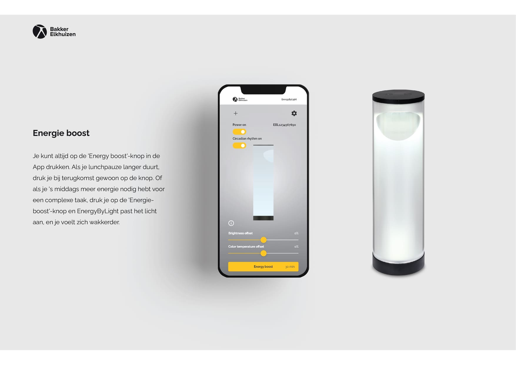 Heb je aan het einde van de werkdag vaak last van branderige ogen, hoofdpijn of een inkakkende concentratie? Grote kans dat je werkplekverlichting niet aansluit bij wat je lichaam nodig heeft. De EnergyByLight van BakkerElkhuizen is geen gewone bureaulamp, maar een geavanceerde lichtoplossing die jouw natuurlijke dagritme volgt en je energieniveau een boost geeft.