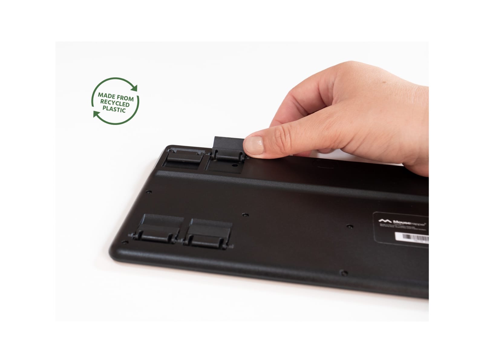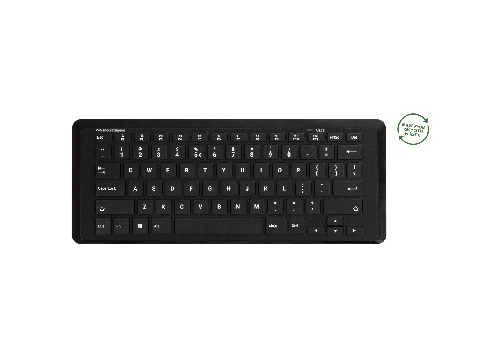 Als je veel onderweg bent en een dun en compact toetsenbord wilt dat niet veel ruimte inneemt op je bureau – kies dan de Mousetrapper Type Mini. De Type Mini is in Zweden ontwikkeld, gemaakt van gerecycled plastic en ontworpen om ergonomisch mee te kunnen werken. Met de 4 inklapbare pootjes kun je de hoogte aan de voor- en achterkant eenvoudig met 5 of 8 mm verstellen. Hierdoor hebben je handen een ideale ergonomische houding. Mousetrapper will niets liever dan goede ergonomische producten maken, en de compacte Type Mini is daarop geen uitzondering!