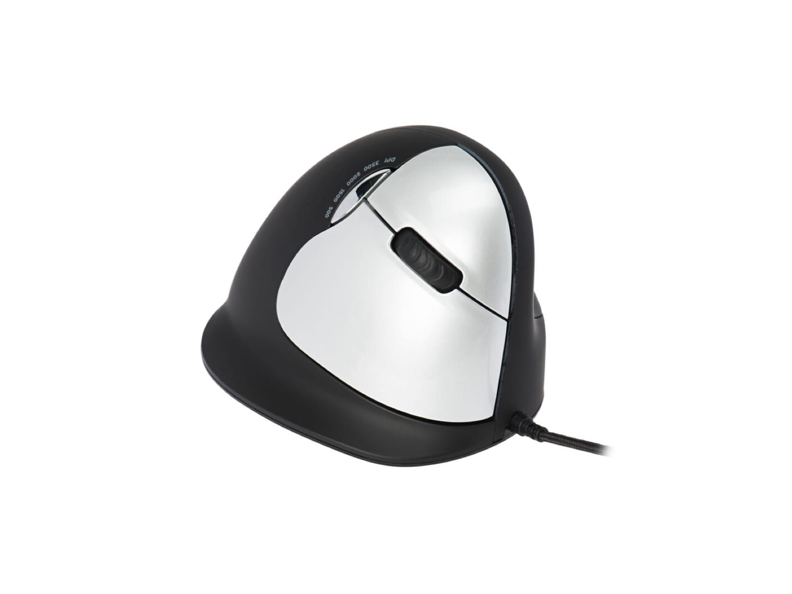De R-Go HE Break Muis is een ergonomische verticale muis met geïntegreerde pauzesoftware. Deze slimme muis helpt je herinneren wanneer het tijd is voor een pauze. De ergonomische R-Go HE Break muis heeft een verticale stand, waardoor je de muis automatisch met je onderarm zult bewegen in plaats van alleen je hand. Hiermee voorkom je overbelastingsklachten, zoals RSI- klachten. De HE Break muis heeft een ronde vorm, zodat je hand en pols in een natuurlijke, ontspannen stand staan. De muis ligt prettig in de hand en ondersteunt alle vingers. Ben je links- of rechtshandig? We hebben verschillende versies en maten beschikbaar, zodat de muis in elke hand past.