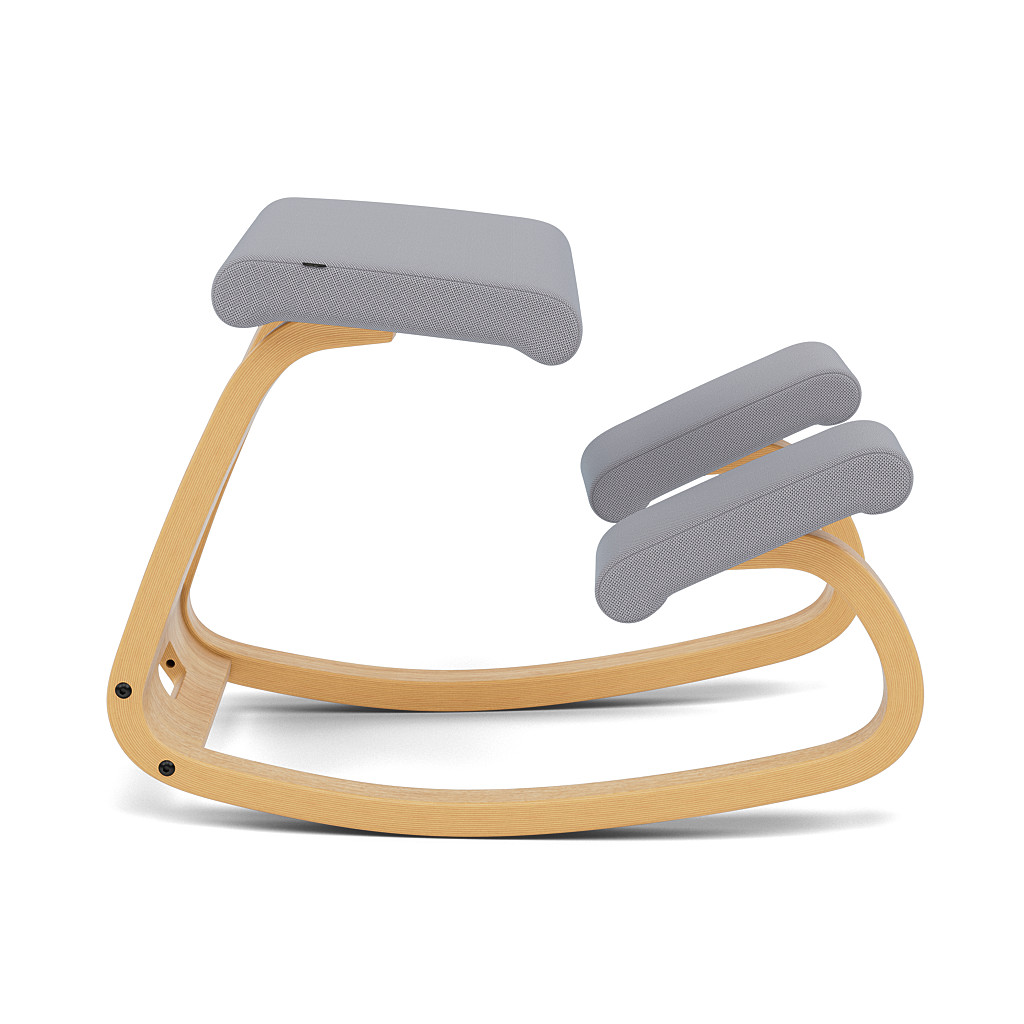 De Varier Variable kniestoel is een onmiddellijk herkenbaar designicoon. Variable™, voor het eerst geïntroduceerd op de Scandinavische meubelbeurs in Kopenhagen in 1979, was een van de eerste prototypes afgeleid van het balansconcept. De twee kussens onder de zitting kunnen worden gebruikt om je schenen, één voet, beide of geen van beide op te laten rusten door je voeten op de grond te plaatsen. Je kunt je ook omdraaien of zijwaarts zitten als je dat wilt. De stoel is ontworpen als een open constructie, vrij van mechanische verstelonderdelen. Hij is licht van gewicht en kan gemakkelijk worden verplaatst.