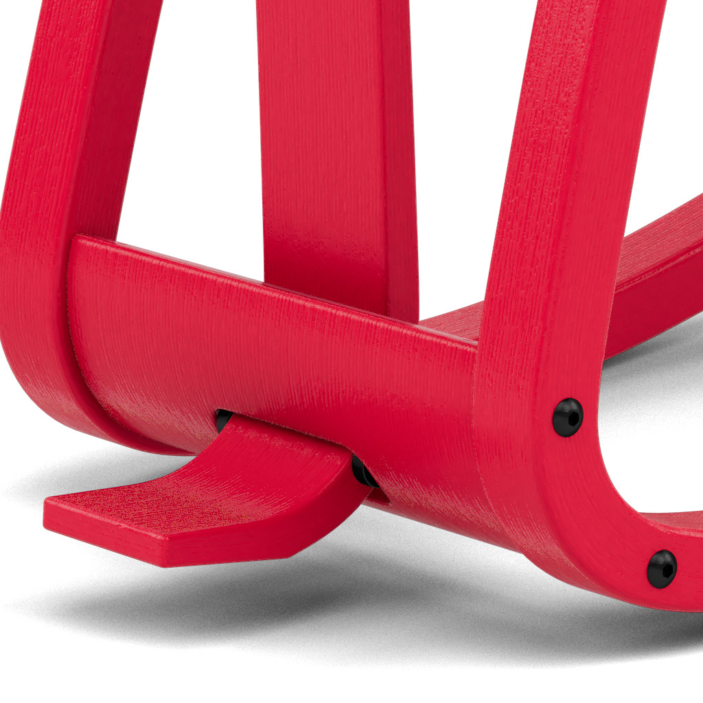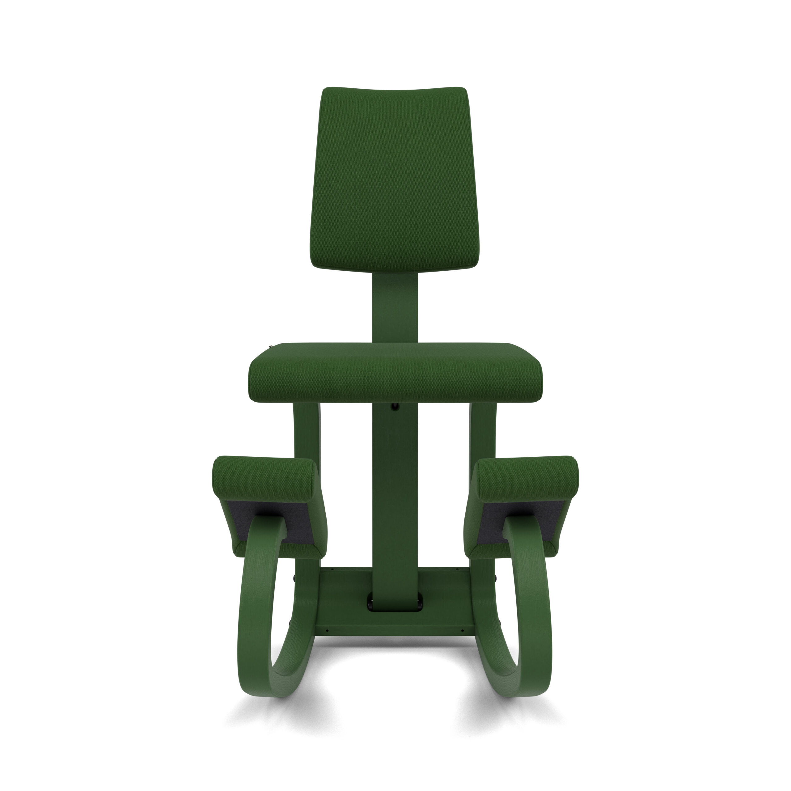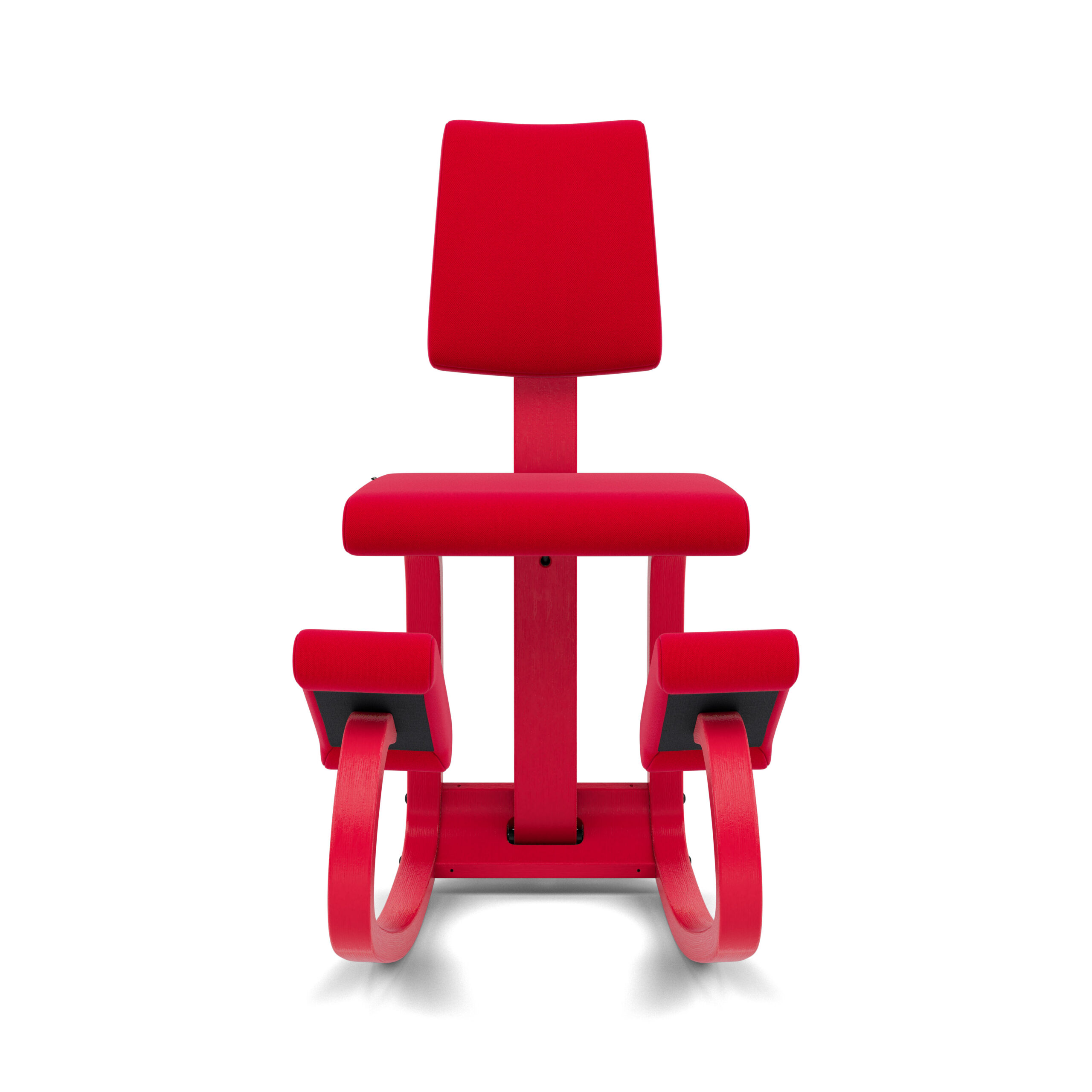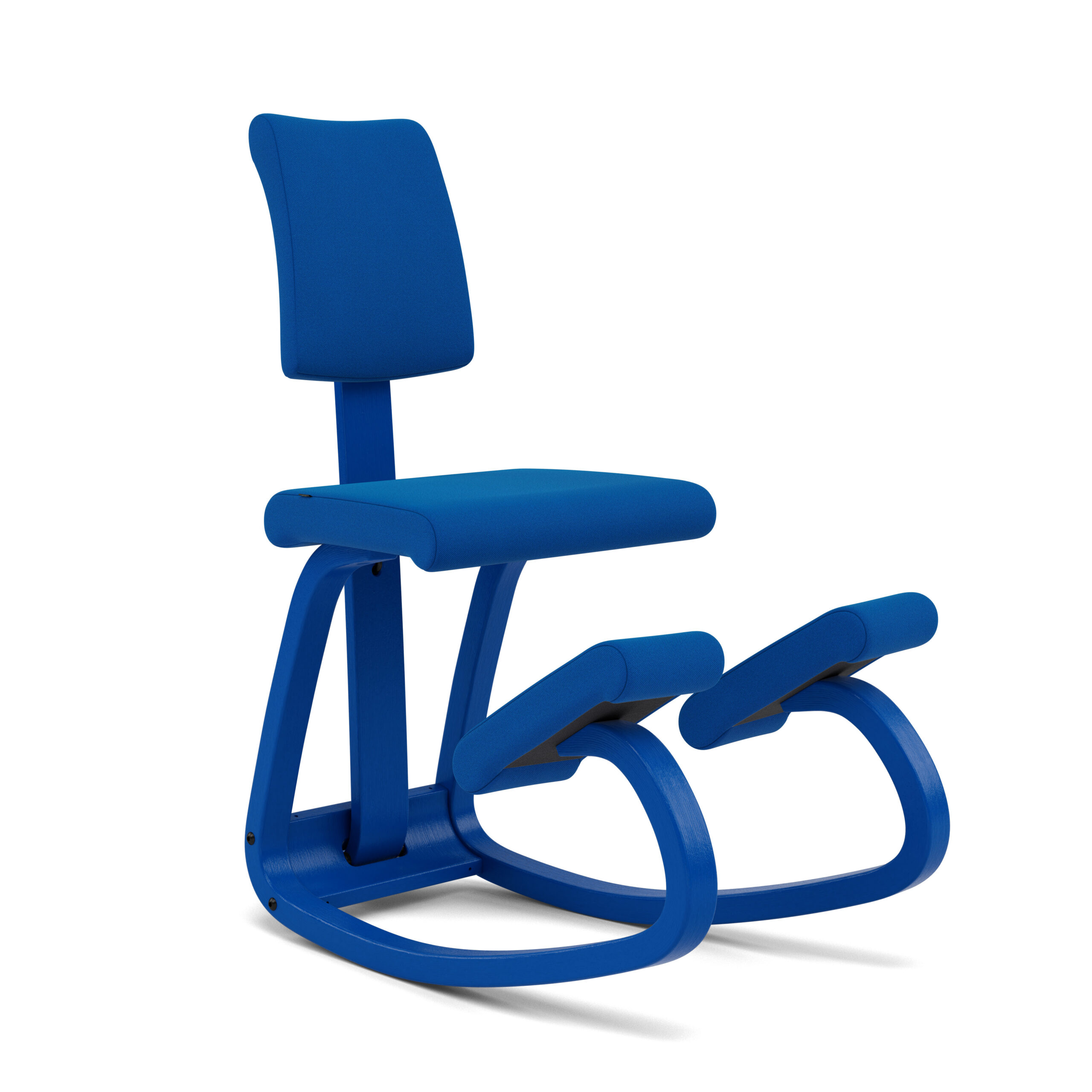 De rugleuning biedt steun bij achterover leunen. Wanneer je je gewicht naar voren verplaatst, ondersteunen de schenkels- of scheenbeensteunen je lichaam, zodat je je volledig kunt concentreren op je werk of taak. De geoptimaliseerde kromming van de houten glijders zorgt ervoor dat het vinden en behouden van een gebalanceerde zithouding moeiteloos en intuïtief gaat.